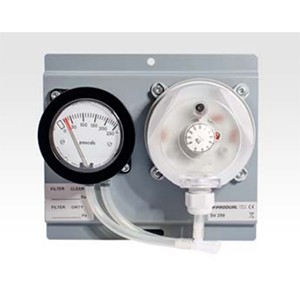 Unità per monitoraggio filtri ideata per il monitoraggio dei filtri nei sistemi di trattamento dell'aria e di altri gas non infiammabili. L'unità comprende un manometro (scala 0...500 Pa) ed un pressostato differenziale (scala 50...500 Pa). Il set-point del pressostato differenziale può essere regolato. Dimensioni: 170x150x68 mm. Grado di protezione IP54.